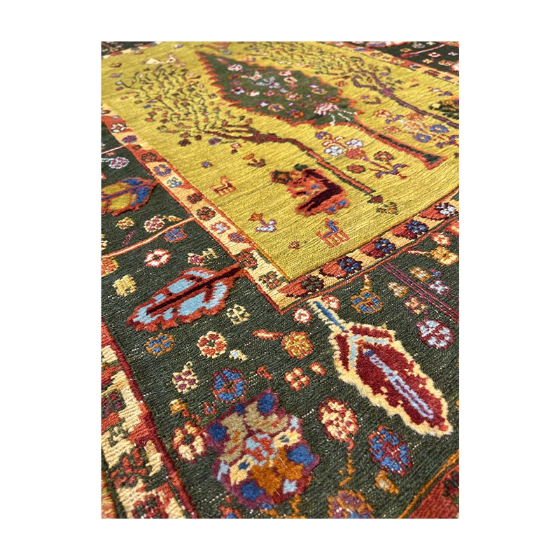 خرید گلیم دستباف سبز طرح درخت زندگی از سایت هدیه جاده ابریشم