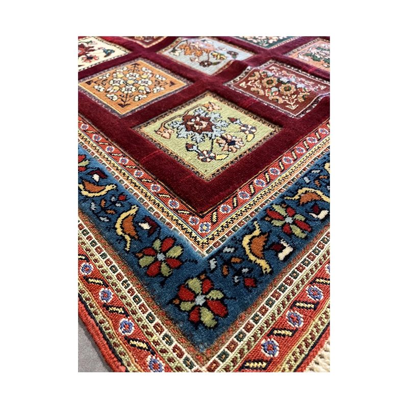 گلیم مستطیل چهل تکه قرمز تیره ایرانی |